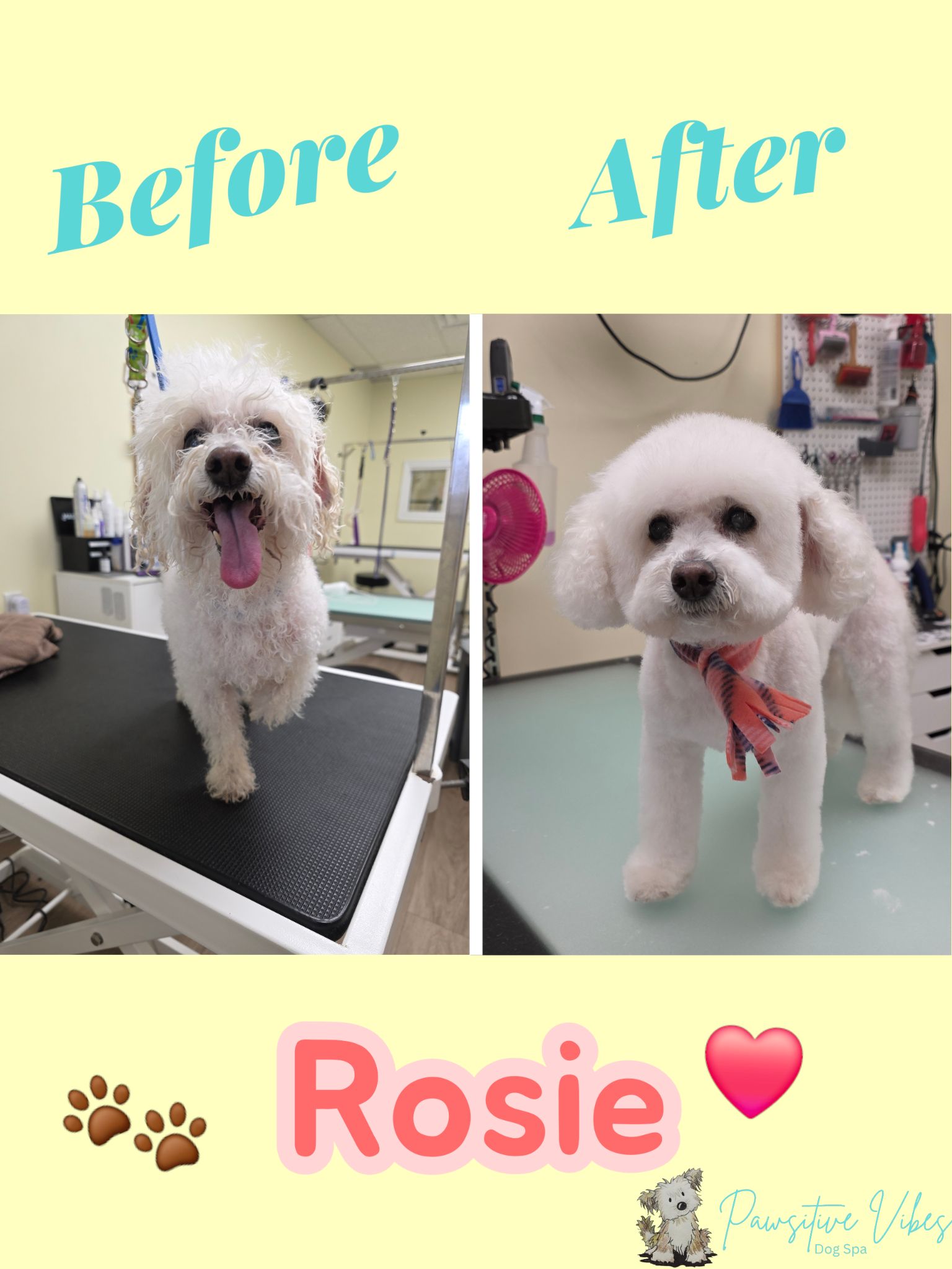 “We love Pawsitive Vibes! Very easy to schedule both of our dogs in for grooming services. One of our dogs has anxiety from previous negative grooming experiences, the staff at Pawsitive Vibes are very good with making her feel comfortable and safe… This is our new favourite grooming place and we will be bringing all of our animals here going forward!”